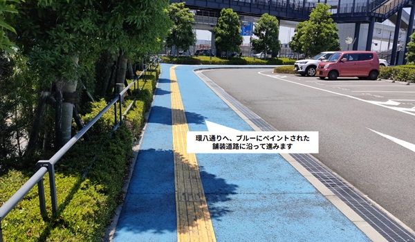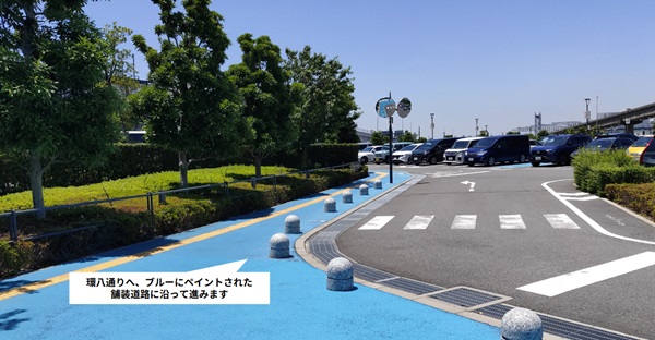 エアポートガーデンの外にあるナビに沿って移動します。(ブルーの塗装に沿って大通りまで進みます。)