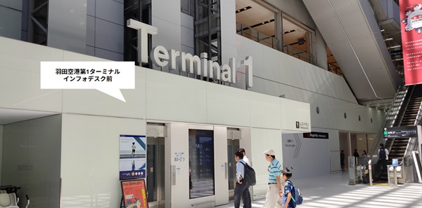 羽田空港第2ターミナルのインフォデスク前のモノレールのりばへ向かいます
