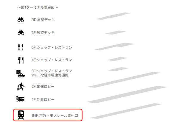 東京モノレールの駅は、京急線と異なり、第1ターミナル駅、第2ターミナル駅、第3ターミナル駅とそれぞれ駅があります。
